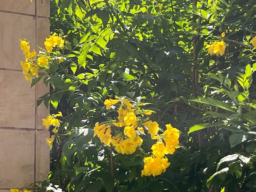 Another beautiful heat-loving shrub that I admired throughout San Antonio was the Texas native, Esperanza, or Yellow Bells (Tecoma stans). It boasts bright yellow bell-shaped flowers that attract hummingbirds and bees. It flourished everywhere throughout the landscapes.